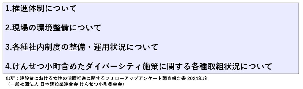 「建設業における女性の活躍推進に関するフォローアップアンケート」主な調査項目