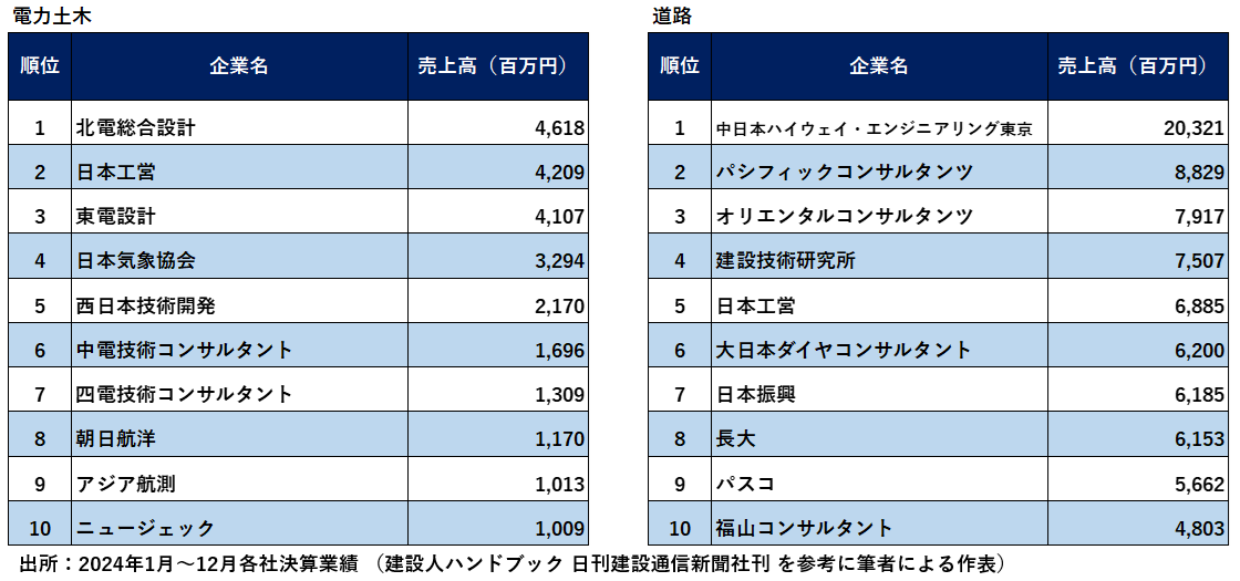 前年同様、日刊建設通信新聞社が2025年9月24日に発刊した「建設人ハンドブック2026」に掲載された業務額を出典元としています。