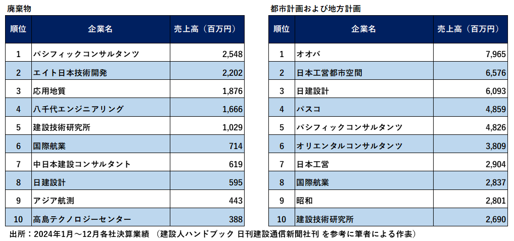 2025年 建設コンサルタント業務額上位30社・業務分野別上位10社ランキング【建設知識 土木編】