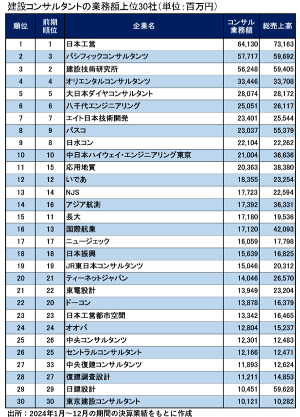 建設コンサルタント「コンサル業務額上位30社」ランキング