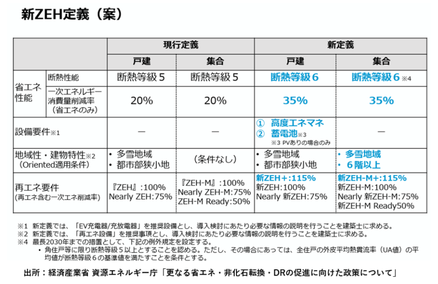 下表は、2027年4月から導入される「新ZEH定義(案)」になります。