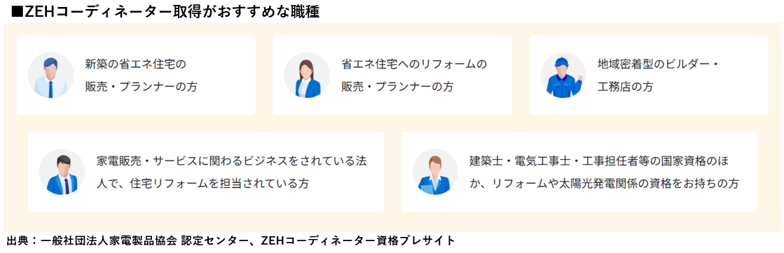 ZEHコーディネーター取得をお奨めする方や推奨する職種