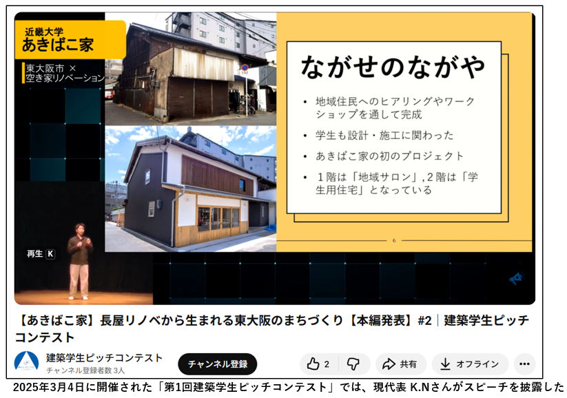 2025年度代表を務める近畿大学 建築学部 建築学科3年 K.Nさんに、あきばこ家の「すごいところ」を3つ挙げていただきました。
