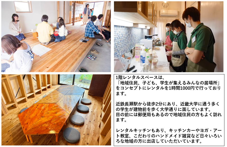 そして、ながせのながや2階のシェアハウスには入居者が住まい、1階では一般へのレンタルスペース貸出しを運営しながら、学生団体あきばこ家の主たる活動拠点となっています。