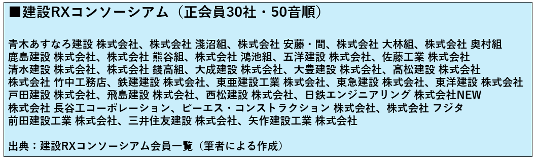 発足後は多くの企業が賛同し、現在では総合建設業を中心に正会員が30社となったほか、技術開発企業や専門工事業者、建機レンタル企業などが協力会員として漸次参画しており、2025年11月5日現在で282社となっています。