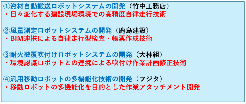 ロボット開発の障壁となるのは、開発予算が多大になることと、工種が多く、現場環境もそれぞれ異なるため、汎用性が確保しにくい点がありました。