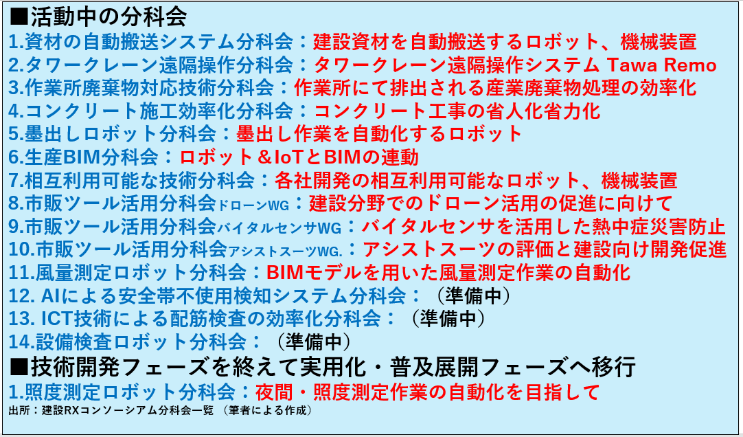 さまざまな技術開発や実証試験を共同で進めていくため、複数の分科会を立ち上げて推進しています。2025年11月5日現在、下表の通り15の分科会があり、各企業が開発状況や成果を共有しています。