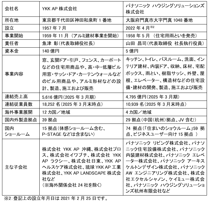 ■YKKAPとパナソニックハウジングソリューションの会社概要