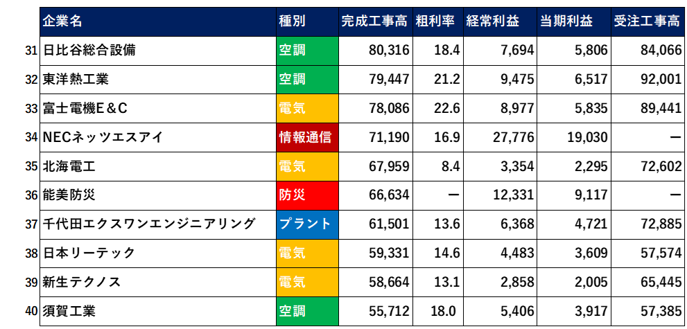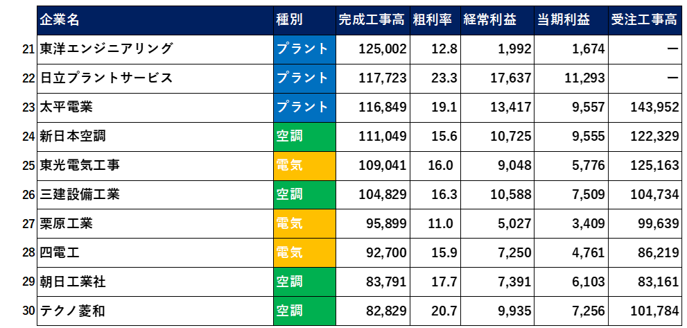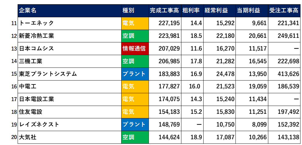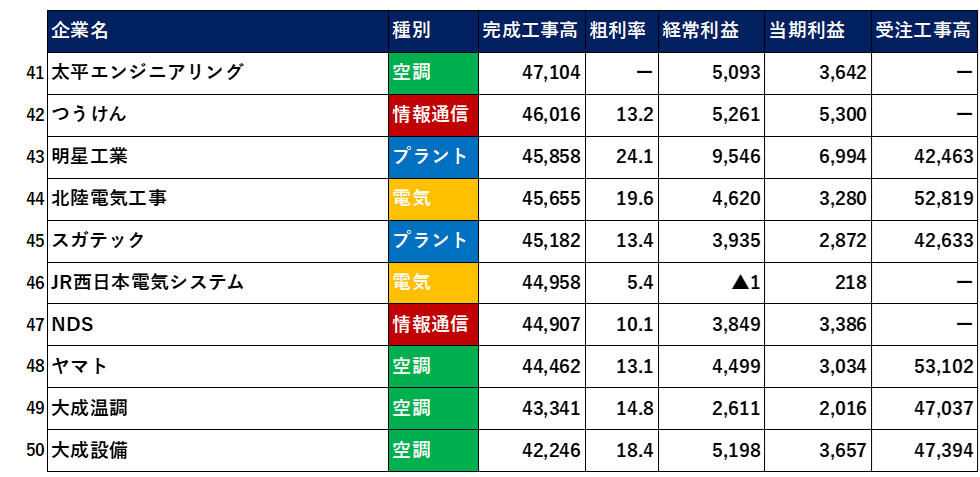 【2025年3月決算】設備工事業・電気・空調・通信上位50社【業界研究】
