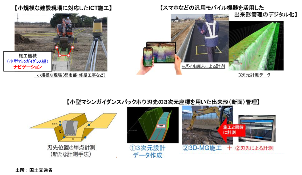 中小建設業が受注する工事は小規模工事が主体となり、ICT化で使用する技術手引きや実施要領も、大規模工事とは異なる専用化が必要です。