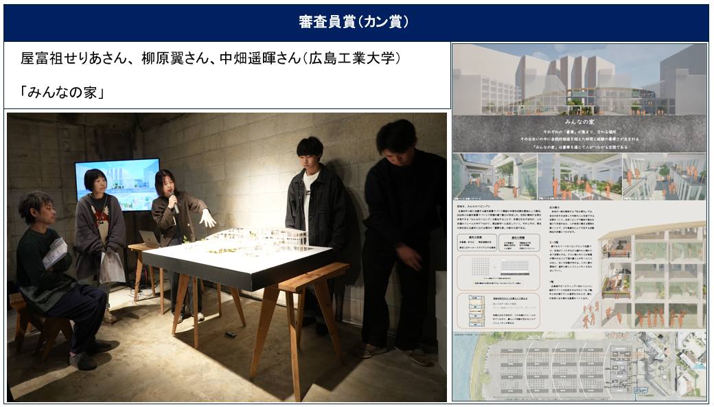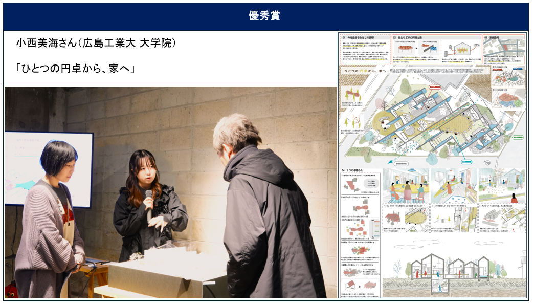 優秀賞は広島工業大学大学院1年生の小西美海さんの「ひとつの円卓から、家へ」が選ばれました。