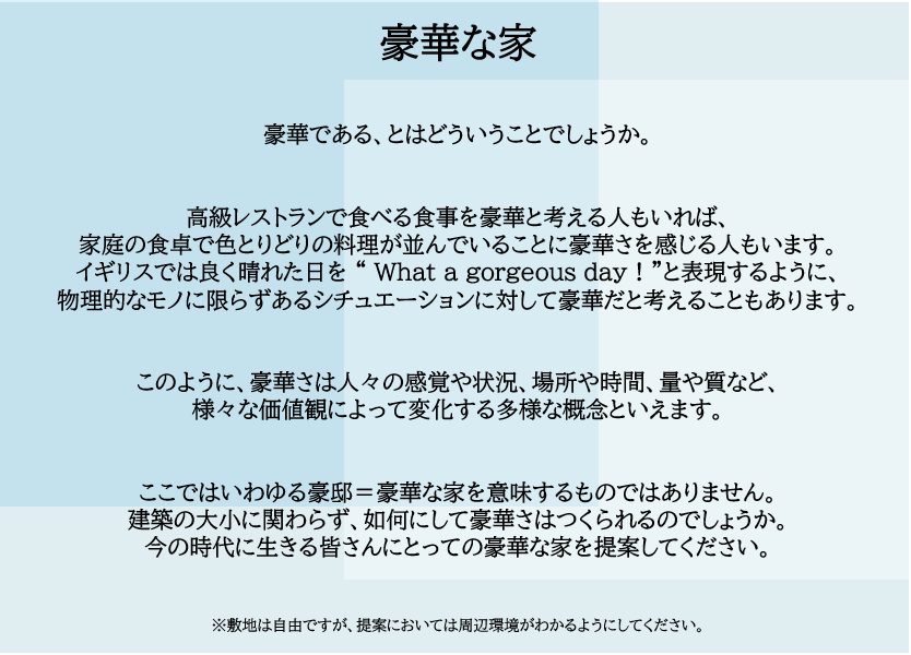 ≫第52回五三会建築設計競技「豪華な家」 詳細ページはこちらから≪
