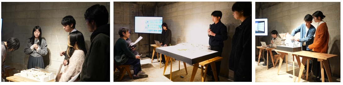 設計提案も、建築物だけではなく、構造体、共用部、暮らし、環境、余白、住戸以外、公共と住民の関係性、最適なスケールなど実に多岐に渡り、7組の修士1年作品の中で、学部4年、3年による2作品が何ら遜色なく、「思いが伝わる設計提案」として審査員賞を受賞したことも大変印象深く感じました。