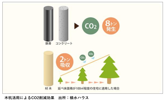 出典:木杭を使用した環境配慮型の新地盤補強工法「SH-KPパイル工法」を共同開発し、12月1日より販売開始(積水ハウス ニュースリリース)