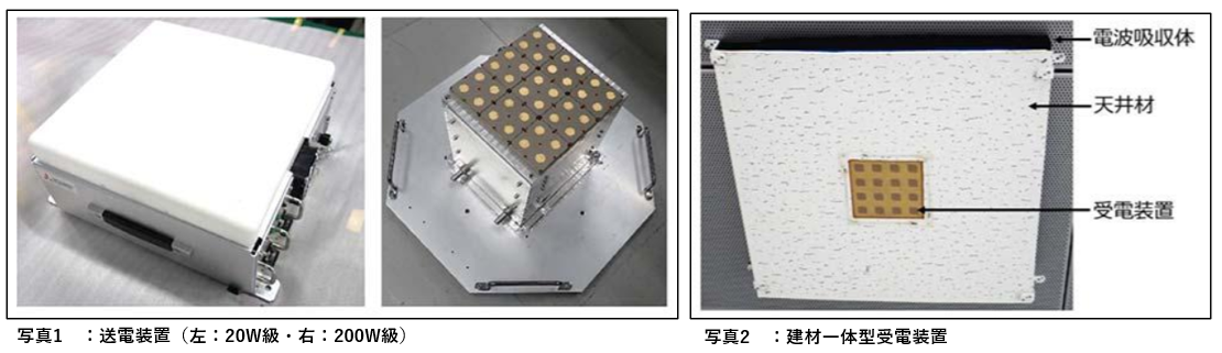 ・送電装置:最大出力200W級のマイクロ波ワイヤレス送電装置(三菱電機開発、写真1参照)