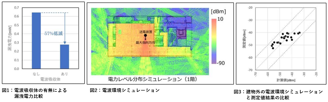 また、漏えい電力※の高精度な予測が可能な電波環境シミュレーションによる解析結果の妥当性を検証しました。