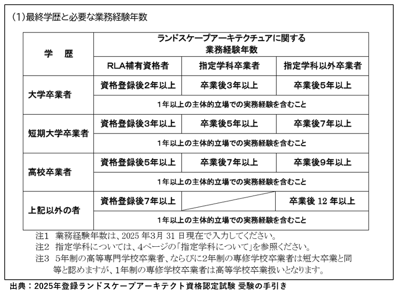 出典:2025年登録ランドスケープアーキテクト補(RLA補)資格認定試験受験の手引き
