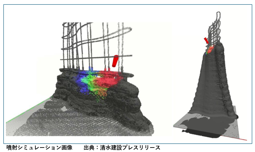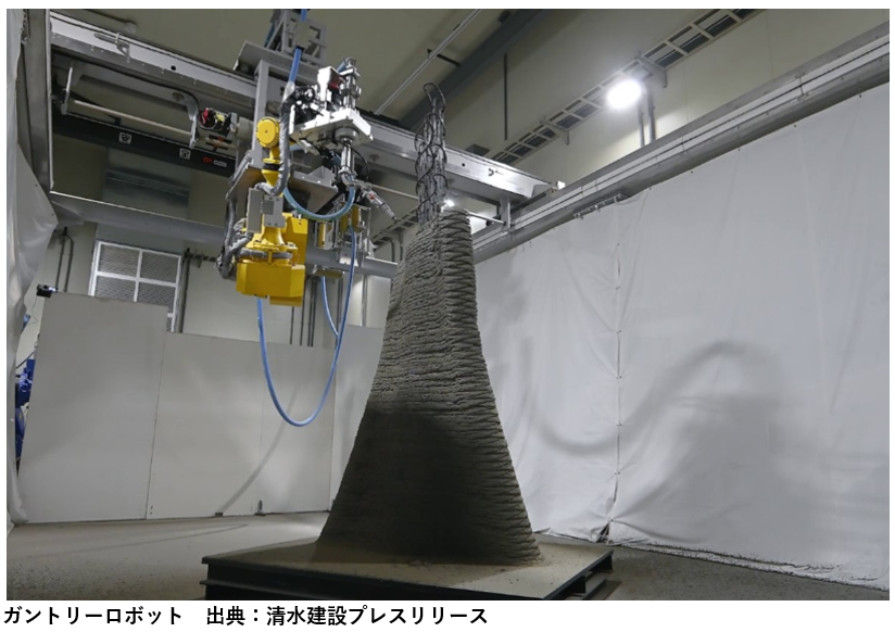 出典:大型曲面部材の施工に対応した材料噴射型3Dプリンティングシステムを構築(清水建設プレスリリース)