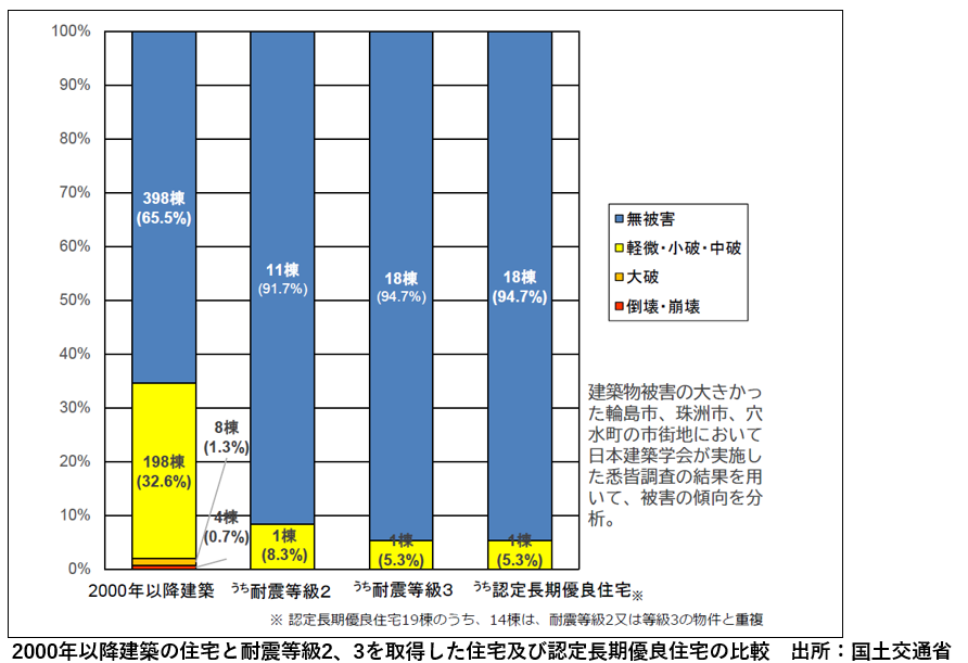 木造建築物の被害状況は耐震等級2以上で倒壊被害ゼロ