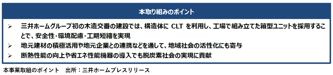 下表は、三井ホームによって本事業取組のポイントがまとめられたものです。