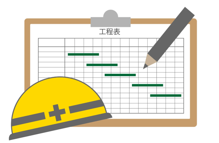 工程表には作業内容や作業期間を記載し、遅延発生時は原因分析と対策を講じて、工程表を見直します。