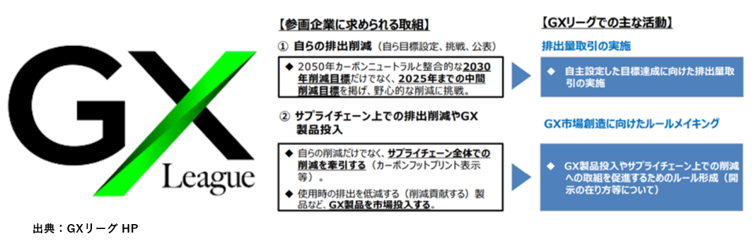 GXリーグは、国際ビジネスで勝てる企業群がGXを牽引する枠組みとして設立され、2024年4月時点で日本のCO2排出量の5割超を占める企業群が参画しました。
