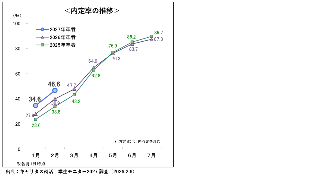 2027年卒は早期内定、2月1日現在で前年プラス6.7ポイント