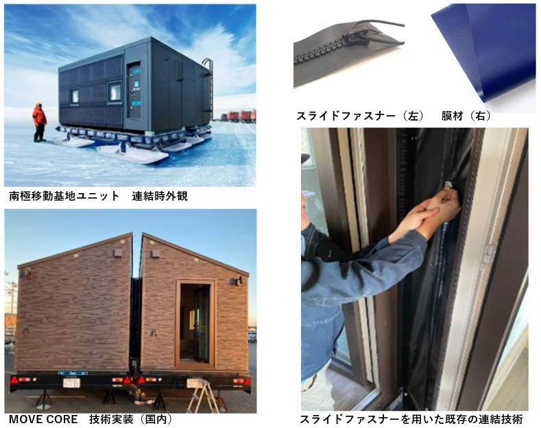 本提案のベースとなっているのは、2019年に南極で行われた「南極移動基地ユニット」の実証実験です。そこでは、専門的な知識を持たない作業者でも容易に建物の拡張・縮小ができる「セルサイクル工法」が検証され、その過程でYKKのファスナーやカンボウプラスの膜材の有用性がすでに見出されているのです。