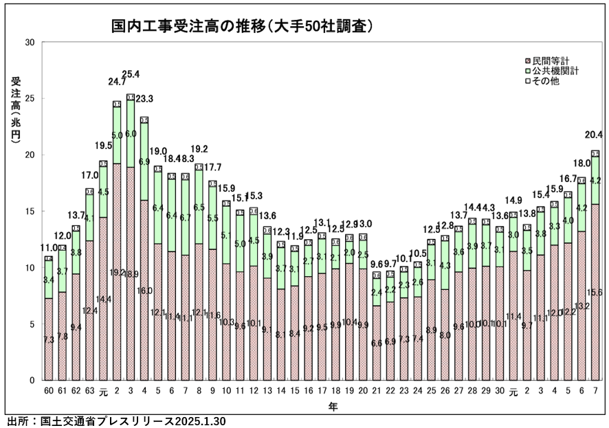 出典:建設工事受注動態統計調査(大手50社調査)結果令和7年 計