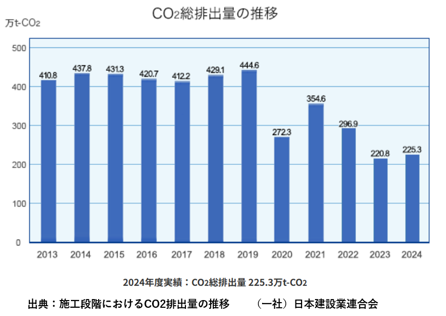 下グラフは建設業の施工段階におけるCO2排出量の推移です。