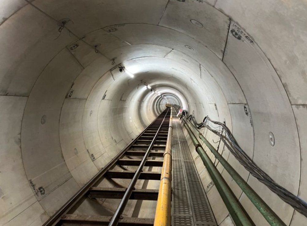 北大阪急行線延伸事業のうち、箕面船場阪大前駅の改札階(地下3階)から地上2階までを結ぶ吹き抜け空間を有したエントランスを築造しました。