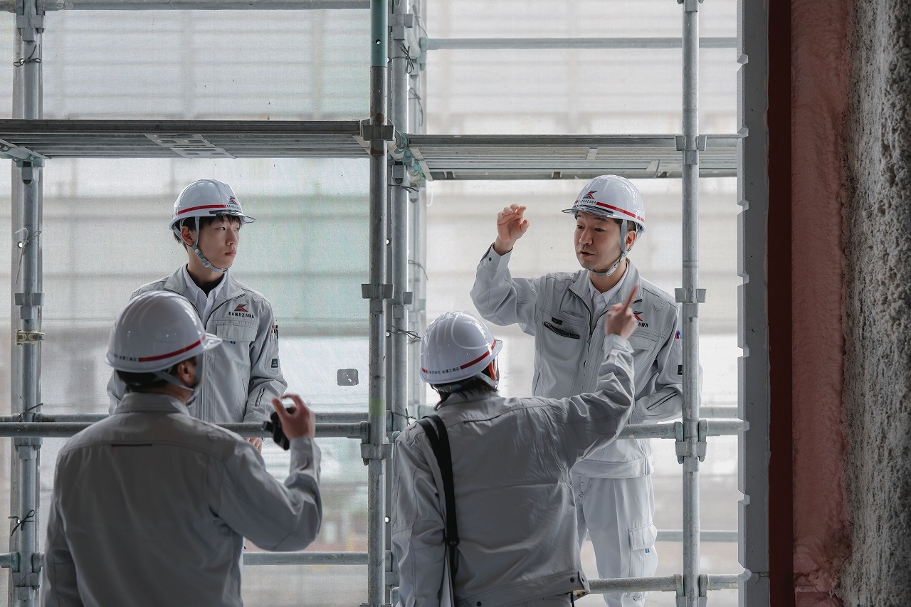 実際の現場では、図面や施工計画を理解し、職人たちと協力しながらデザインを形にしていく難しさを実感しています。しかし、その過程を経て建物に命が宿る瞬間に立ち会えることは大きなやりがいであり、自分自身の成長を実感できる瞬間でもあります。一つひとつの現場に最適なデザインを追求し、同じ現場は二つとないことが施工管理の面白さであり、金澤工務店で働く魅力だと感じています。